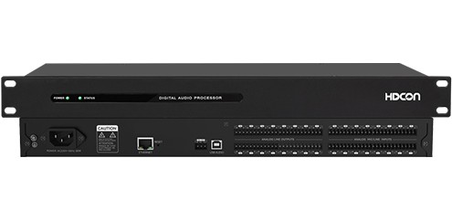 数字音频处理器HT-DT16DS,带OLED屏,显示通道状态,设备IP地址,版本号。支持16路平衡式话筒/线路输入,具有48V幻象供电软开关,16路平衡式线路输出。支持反馈、自动增益、回声消除、噪声增益补偿、自动混音、噪声抑制、中控控制。