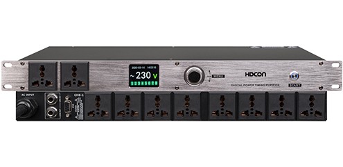 电源时序器HT-DY360设计容量10KVA,保证系统的供电安全。8路万用插座继电器受控与2路万用插座直接输出,每路可达40A。采用万能插座,适用各种类型插头,8路开关通道输出,每路延时开启和关闭时间可自由设置(范围0~999S,单位为秒);新增倒计时功能(最大99小时)。支持电源净化功能(选配EMI专业电网滤波器),配有2吋彩色液晶智能显示屏,可实时显示当前电压、日期时间、通道开关状态。