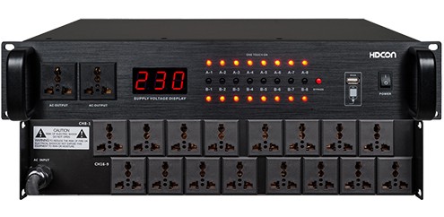 电源时序器HT-DY860设计容量20KVA,保证系统的供电安全。16路万用插座继电器受控与2路万用插座直接输出,每2路共用开关控制,每路双继电器(40A×2)同时供电。